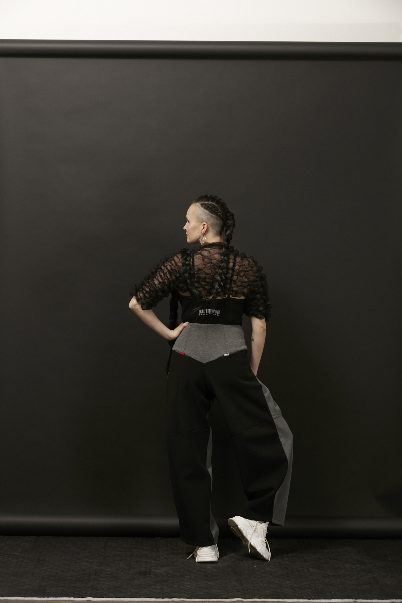 Oboustranné nošení podtrhuje variabilitu modelu i hravost značky YaxiTaxi s jemným nádechem avantgardy.